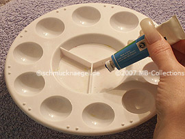 Legen Sie jetzt eine Papierserviette oder etwas änhliches neben die Farb-Mischpalette.
