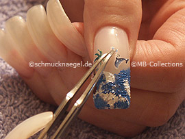 Drücken Sie jetzt mit der Pinzette den 3D Nail Sticker fest an die Fingernageloberfläche an.