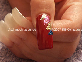 Zeichnen Sie mit dem Nailart Liner in der Farbe gold-glitter ein drittes „V“ neben dem zweiten „V“.