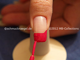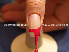 Lackieren Sie jetzt die untere Seite des Fingernagels mit dem Nagellack in pink.
