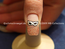 Zeichnen Sie eine Augenmaske für Karneval auf die freie Fingernagelfläche, wie auf den Abbildungen dargestellt.