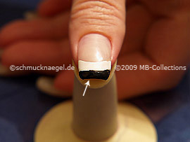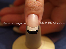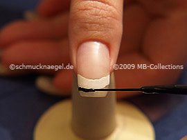 Lackieren Sie jetzt die freie Fingernagelspitze mit dem Nailart Liner in der Farbe schwarz.