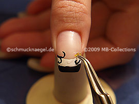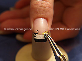 Drücken Sie jetzt mit der Pinzette das Blattgold an den Fingernagel.