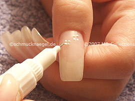Zeichnen Sie auf Ihren Fingernagel mit dem Nailart Pen in der Farbe weiß mehrere voneinander versetzte kleine Punkte.