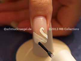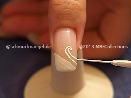 Zeichnen Sie jetzt mit dem Nailart Liner in der Farbe weiß ein ähnliches Muster auf den Fingernagel.