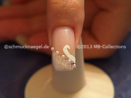 Nach dem Trocknen des Klarlackes ist das Hochzeit Motiv mit Halbperlen und Strasssteinen fertig.
