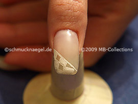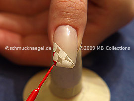 Zeichnen Sie jetzt mit dem Nailart Liner in weiß ein Raster auf die Fingernagelspitze.
