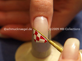 Füllen Sie jetzt mit dem Nailart Liner in der Farbe rot die restlichen Rasterfelder aus.
