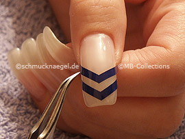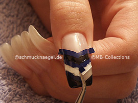 Entfernen Sie jetzt mit der Pinzette vorsichtig die dritte V-förmige Schablone von Ihrem Fingernagel.