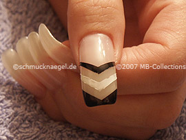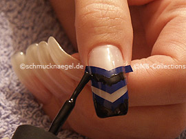 Lackieren Sie jetzt die freie Fläche zwischen der ersten und zweiten Schablone mit dem Nagellack in der Farbe weiß.