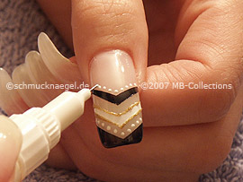 Zeichnen Sie jetzt mit dem Nailart Liner in der Farbe gold-glitter eine Linie entlang der Kanten des weißen Nagellackes.