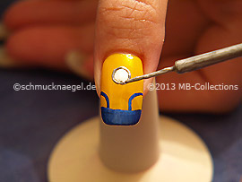 Zeichnen Sie mit dem Nailart Liner in der Farbe weiß einen großen Punkt auf den gelben Nagellack.