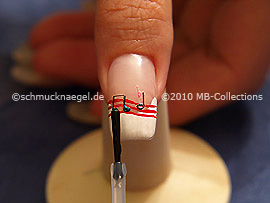 Zeichnen Sie mit dem Nailart Liner in rot zwei weitere Linien oberhalb der ersten Linie.
