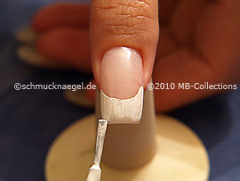 Lackieren Sie den vorderen Teil des Fingernagels mit dem Nagellack in der Farbe weiß.