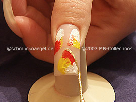 Setzen Sie einen Tropfen des Klarlackes zwischen die drei Muster auf die freie Fingernageloberfläche.