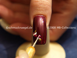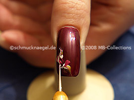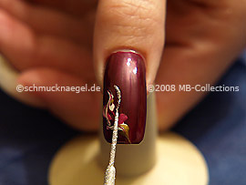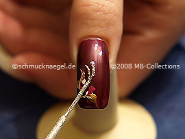 Zeichnen Sie jetzt mit dem Nailart Liner in der Farbe silber-glitter zwei geschwungene Linien auf den weinroten Nagellack.