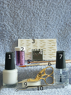 Schritt 4: Sie benötigen den Klarlack, das Glitter-Pulver in lila und den Pinsel