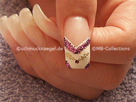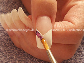Tragen Sie das Glitter-Pulver in lila auf den weißen Nagellack auf.
