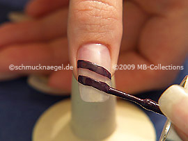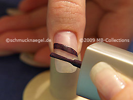 Zeichnen Sie mit dem Nagellack in der Farbe dunkellila drei schräge Linien auf den Fingernagel.