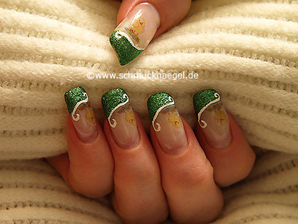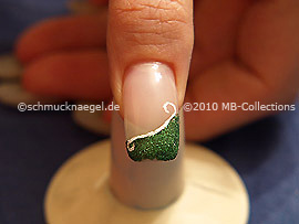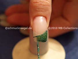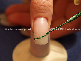 Lackieren Sie jetzt die Fingernagelspitze mit dem Nailart Liner in grün-glitter.