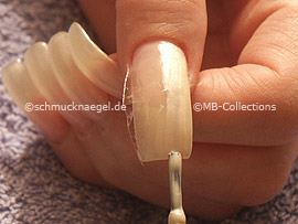 Lackieren Sie jetzt die freie Fingernagelfläche mit dem Nagellack in der Farbe hellbeige.