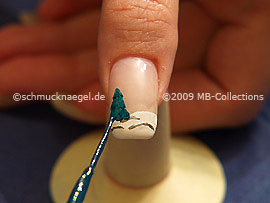Lackieren Sie mit dem Nailart Liner in dunkelgrün die Innenfläche vom Tannenbaum.
