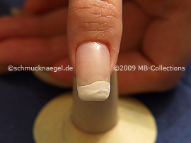 Lackieren Sie jetzt die Fingernagelspitze mit dem Nagellack in weiß.