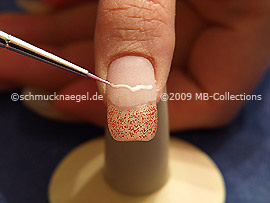 Apply the glitter gel in red on the lower half of the fingernail, as left in the pictures shown.
