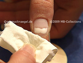 Pay attention that the finishing gel is applied on the edge of the fingernail. This protects also the tip of the fingernail.