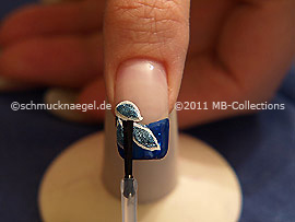 Begin at the left side and draw with the nail art liner in the colour turquoise-glitter three ovalness.