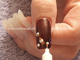 Now you need the nail art pen in the colour gold. Draw offset to the upper point another point.