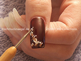 Set the spot-swirl or toothpick at the upper golden side of the middle points and pull over the three points a swung line.