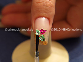 Step 3: Clear nail lacquer, the spot-swirl and three drop shaped strass stones in fuchsia