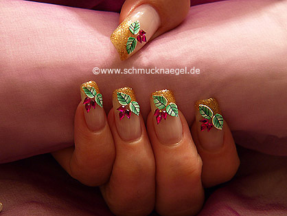 The nail art motif with fimo fruits and strass stones should correspond approximately to the picture.