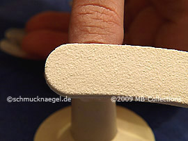 Abrade the fingernail surface for preparation with a fine nail file, as left in the pictures shown.
