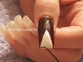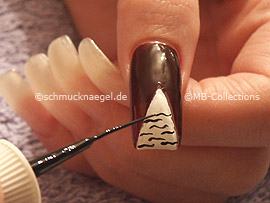 Now draw with the nail art liner in the colour black several short swung lines on the white nail lacquer.