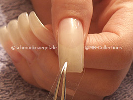 Press with the tweezers the tape firmly to the surface of your fingernail.