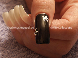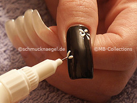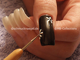 Now draw with the nail art liner in the colour white between the two flower motifs, which you have drawn before, a long line, which has at the end an elbow downward.