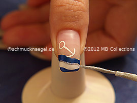 Draw with the nail art liner in the colour white a anchor on the free fingernail surface.