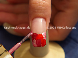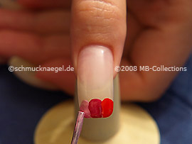 Now paint with the nail polish in the colour pink a small area above the bright red colour.