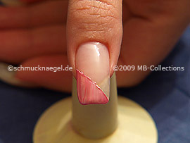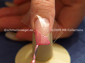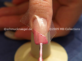 Draw with the nail art liner in the colour fuchsia-glitter a line at the transition of the free fingernail surface and the pink nail lacquer.