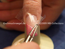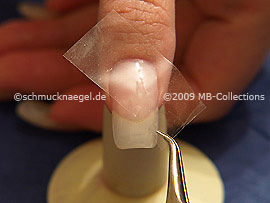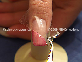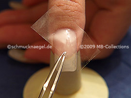 Press with the tweezers the tape firmly to the surface of the fingernail.