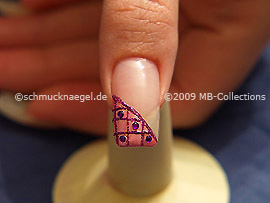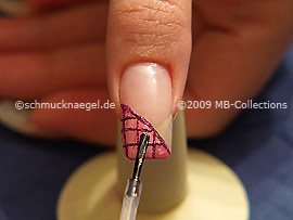 Now draw with the nail art liner in fuchsia-glitter a raster at the nail lacquer, similarly as left in the pictures shown.