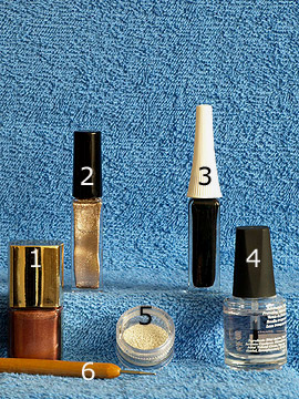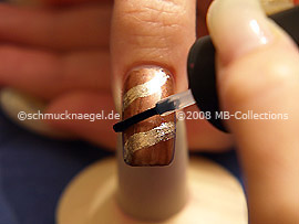 Now use the nail art liner in the colour black. Start with a small semicircle and draw a line on the transitions of the golden and the brown nail lacquer.