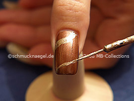 Begin on the left edge of the fingernail and draw with the nail art liner in the colour gold a curved line to the upper right edge.