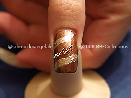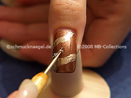Begin on the left side of the fingernail tip and draw with the nail art liner in gold a curved line upwards to the right edge of the fingernail.