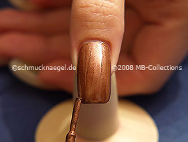Paint the fingernail with the nail lacquer in the colour brown. Begin at the rear side of the fingernail and pull the brush forward to the edge of the fingernail.