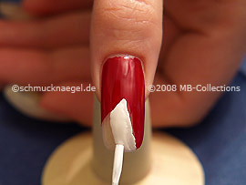 Now draw with the nail art liner in the colour red three swung lines on the white nail lacquer.