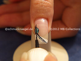 Draw with the nail art liner in the colour turquoise a small oval on the free nail surface.