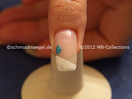 Step 1: Nail lacquer in white, nail art liner in turquoise and turquoise-glitter, clear nail lacquer, spot-swirl and a sequin